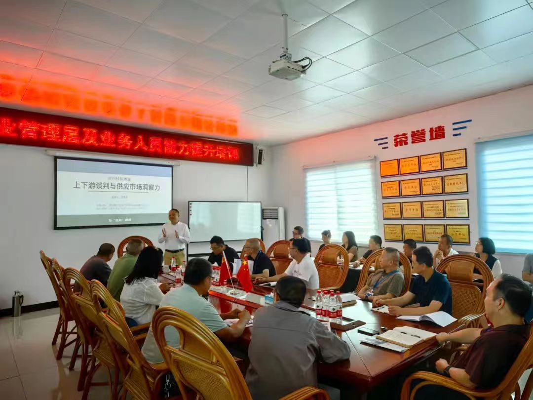 為了提升業(yè)務(wù)人員在復(fù)雜市場環(huán)境下的談判技巧和市場洞察力,以更好地服務(wù)客戶,應(yīng)對各種“困難場景”談判。公司于7月19日,組織了一場題為“上下游談判與供應(yīng)市場洞察力”的談判技能培訓(xùn),參加培訓(xùn)學(xué)習(xí)人員為公司全體高管及采購、銷售業(yè)務(wù)人員,邀請業(yè)內(nèi)商業(yè)談判、采購與供應(yīng)管理實戰(zhàn)專家湯曉華授課。