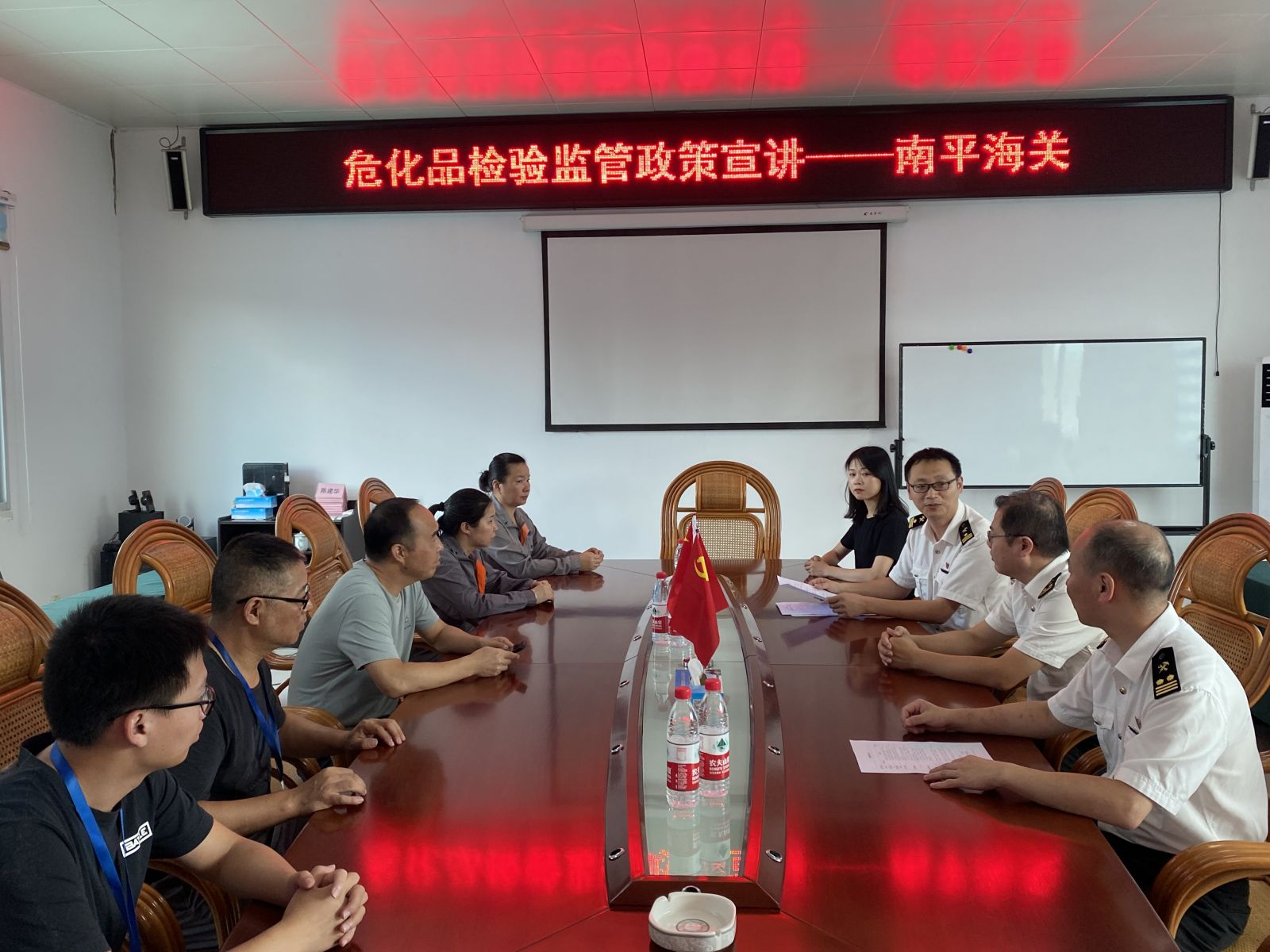 2021年07月20日上午10:00左右,南平海關(guān)副關(guān)長(zhǎng)陳俊穎、南平海關(guān)查驗(yàn)科一科領(lǐng)導(dǎo)黃云好、林鼎杰一行蒞臨我司做?;窓z驗(yàn)監(jiān)管政策宣講、?;窐I(yè)務(wù)交流及管理體系認(rèn)證審核。