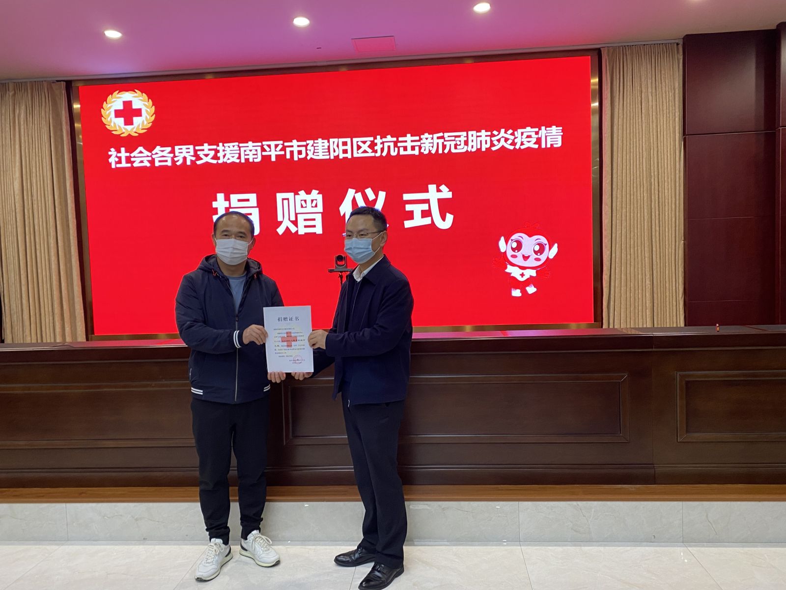 為了助力建陽(yáng)區(qū)疫情防控,弘揚(yáng)社會(huì)正能量,2022年3月28日下午,我司向南平市建陽(yáng)區(qū)紅十字會(huì)捐贈(zèng)20萬(wàn)元人民幣,定向用于我區(qū)新型冠狀病毒感染的肺炎疫情防控工作,建陽(yáng)區(qū)區(qū)長(zhǎng)王沖向我司授予捐贈(zèng)證書(shū),感謝我司對(duì)紅十字公益事業(yè)的關(guān)心、支持與無(wú)私捐助,并合影留念,此次捐贈(zèng),彰顯了我司企業(yè)公民的社會(huì)責(zé)任,展現(xiàn)了新時(shí)代企業(yè)的形象。